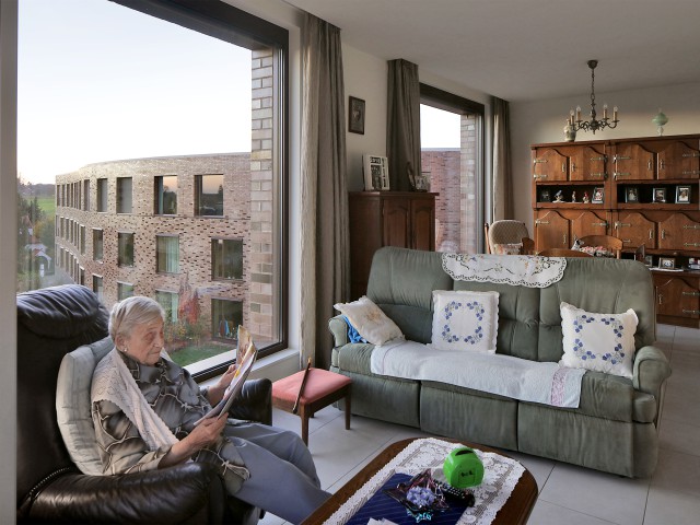The project in Nevele has a spatial set-up that enables different relationships. The basic room consists of two parts: one is private, while the other can easily be opened up to an enlarged corridor that serves as an internal meeting space. The enhanced corridor is connected to the outside in different ways, giving the building an open character and the plot itself a more public feel. The slow transition between these spaces allows for different forms of interaction with a gradually larger group of people, from intimate to public.