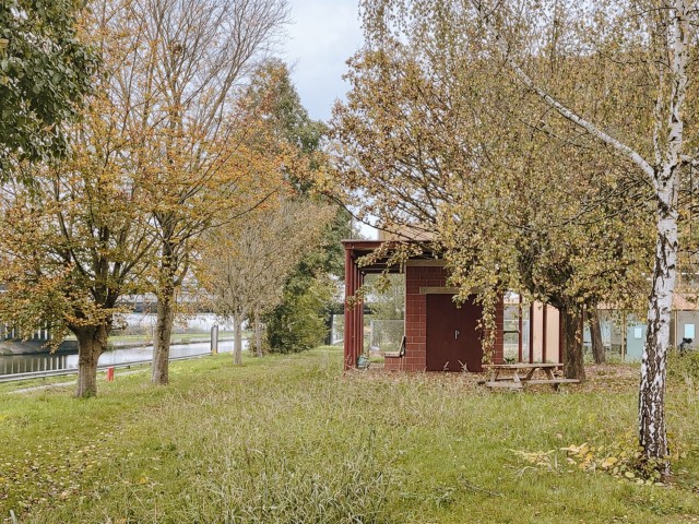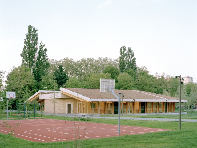 In this regard, the existing sports hall, initially scheduled for demolition, was refurbished through targeted interventions to strategically allow the budget to be preserved for the development of the park. The façades were opened to reveal the sport programs, while giving pedestrians a glimpse into the campus views from the banks of the canal. The campus fence was relocated, turning the sports hall into a new public façade together with a small public folly, conceived as a programmable structure within the park, establishing a new entrance from the canal. A thin metal canopy was added to three façades to articulate the building in its new context.