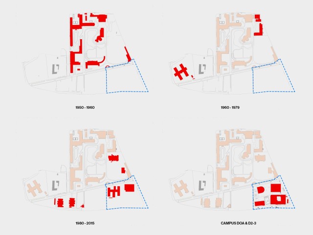 Since the initial project from Coutens and Polak, the Ceria campus has grown within a triangle of infrastructural borders. This development took place without questioning the overall quality of its landscape, its identity, and its relationship towards the borders. Commissioned by the COCOF, the new school complex is located on the remaining available plots of the campus and aims to reinforce the identity of the site at its edges and to improve the legibility of a diverse and rich educational landscape.